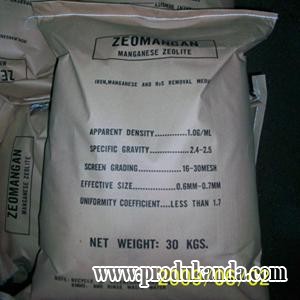 Mangan Zeolite atau Pasir Zeolit berfungsi untuk menurunkan kadar besi dan mangan yang terdapat pada air. Air yang mengandung zat besi atau mangan dapat menimbulkan rasa, bau dan memiliki kotoran yang sangat halus. Adanya kandungan besi dan mangan juga dapat menyebabkan warna air berubah menjadi kuning-coklat. Zeolite juga berguna sebagai ion exchanger untuk menghilangkan polutan kimia dan pengikat bakteri e-coli. Zeolite merupakan sekelompok mineral aluminosilikat terhidrasi dari alkalin, terutama Natrium (Na), Kalium (K), Kalsium (Ca) dan Magnesium (Mg). Wahana Filtertech menyediakan Mangan Zeolite dari Taiwan dengan kemasan 30 kg per bag.